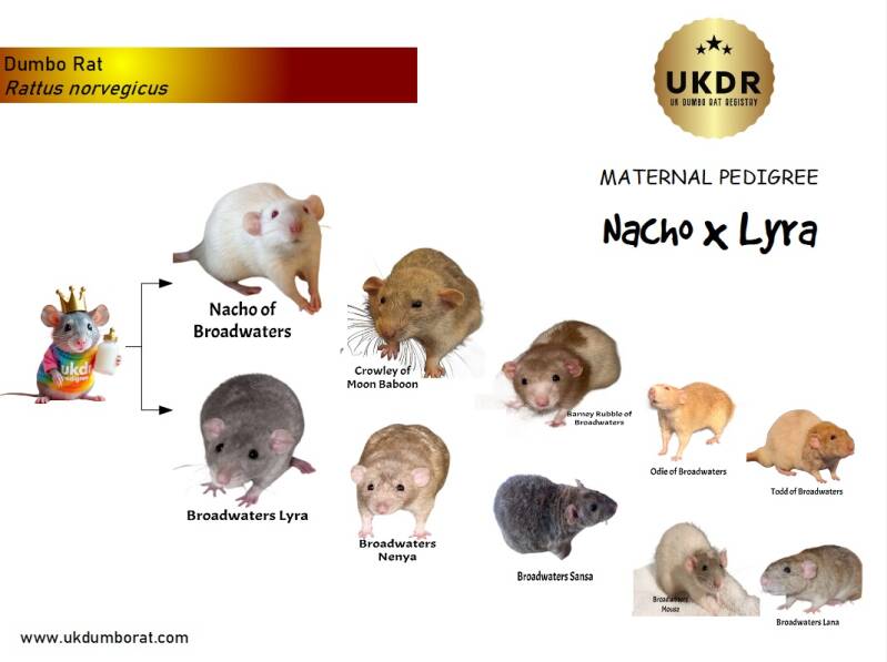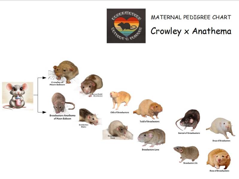 We believe that all animal breeders should be completely transparent in their breeding practices and therefore our maternal line can be found here with individual details and their Pedigree. Below you will also find links to the Stud Record and a gallery honouring and in remembrance of past Broadwaters Rats whose lines were not selected to continue.